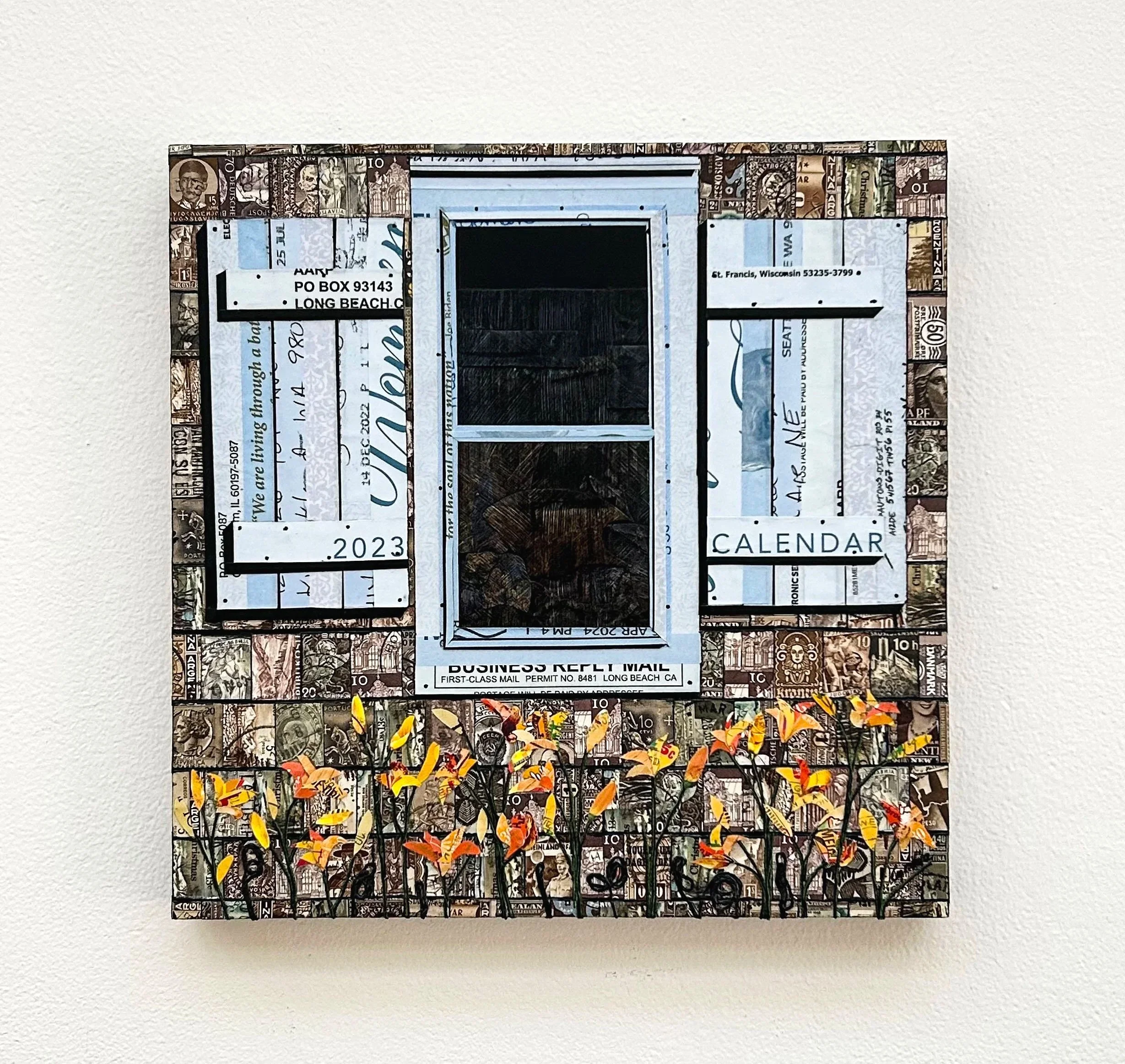 Collage: postage stamps and envelopes, 10 x 10 inches